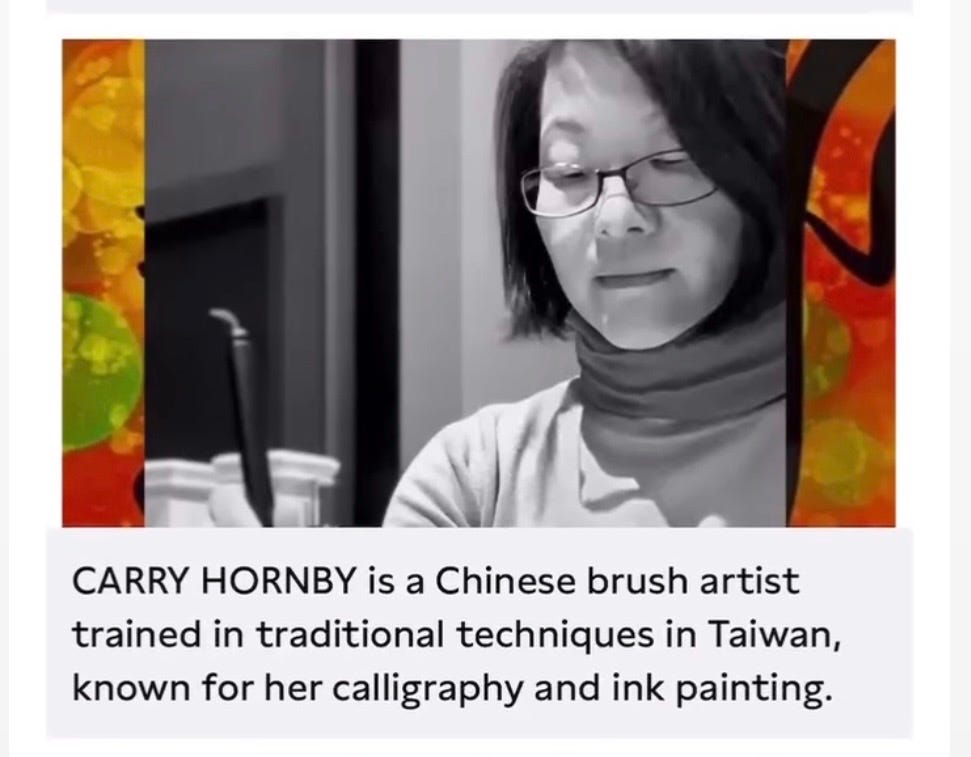 Get in Contact: If you are interested in learning more about Chinese Calligraphy Art or would like to attend one of Carry’s calligraphy classes. To have a private calligraphy class or event, please email Art@hornby.org.uk. You can also follow her on Instagram here https://www.instagram.com/artcarryhornby